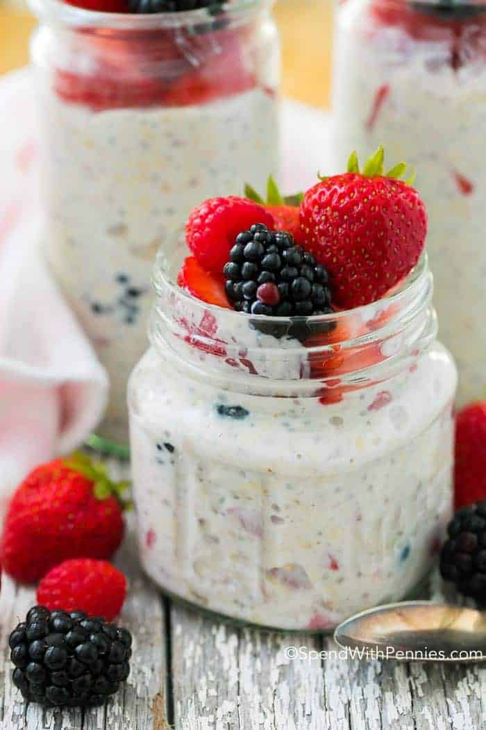 This easy overnight oats recipe is a simple, healthy, flavorful breakfast that you can make ahead for busy mornings and on-the-go breakfasts. Of course, you can customize it with many add-ins and toppings!
