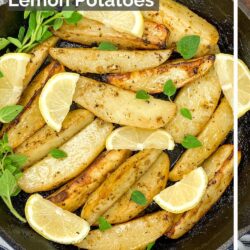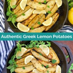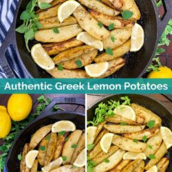 This authentic Greek lemon potatoes recipe will take your roasted potato side dish to the next level. Simple, everyday ingredients transform the potatoes into a comforting, fresh, bright classic Greek side dish that can be served with various main dishes.