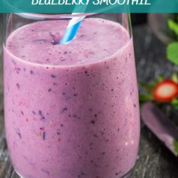 To make this blueberry smoothie vegan, use non-dairy milk and non-dairy yogurt.