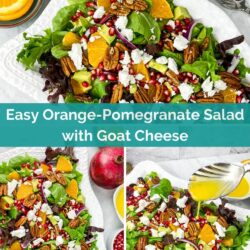 There’s something about the bright flavors and fresh ingredients that just makes me happy. There are many variations of orange salad in Mediterranean cuisines, and this easy, bright, elegant Mediterranean-inspired orange-pomegranate salad with goat cheese is no exception.