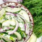 This creamy dill cucumber salad recipe is easy, refreshing, and full of healthy ingredients like Greek yogurt, dill, and olive oil. It takes just 15-minutes to make and is the ideal side dish addition to a potluck, picnic, BBQ, or summer party.